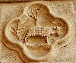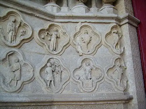 Binnenkant (rechts) van de linker grondmuur van het Saint-Firminportaal