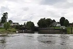 De sluis, met puntdeuren en een hefbrug over het benedenhoofd, stond anno 2009 niet voor de scheepvaart open. In 2013 werd de openstelling van de sluis op de lange baan geschoven.[1] De vaarweg heeft derhalve geen CEMT-klasse.