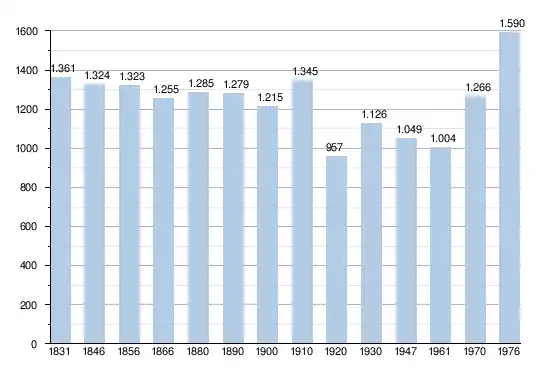 - Bronnen:NIS, Opm:1831 tot en met 1970=volkstellingen; 1976 = inwoneraantal op 31 december