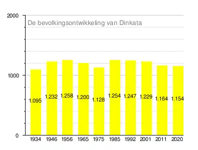 Op 31 december 2020 werden er 1.154 inwoners in het dorp Dinkata geregistreerd door het Nationaal Statistisch Instituut van Bulgarije.[1] Het aantal inwoners is sinds de eerste officiële telling van 1934 vrij stabiel gebleven en schommelt rond de 1.000 en 1.250 personen.