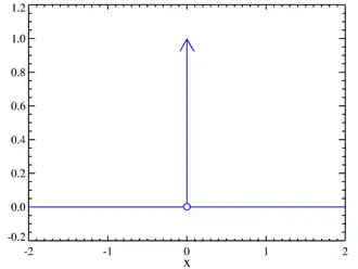 De diracdelta is geen functie maar een distributie of maat.[1][2] [3] De diracdelta werd ingevoerd door de natuurkundige Paul Dirac en gedefinieerd als