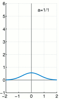 De functies krijgen een spits maximum bij met een breedte ongeveer en de hoogte ongeveer Voor alle is de oppervlakte onder de kromme gelijk aan 1.