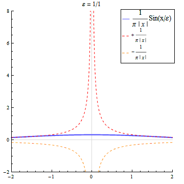 leidt niet tot de deltafunctie, omdat de sinc-functie ook toenemende negatieve waarden aanneemt. Zie ook de grafiek. Maar in de integraal
