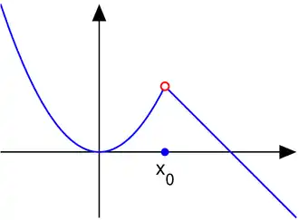 Bij een ophefbare discontinuïteit is de functie niet gedefinieerd in een punt, maar de linkerlimiet is er gelijk aan de rechterlimiet. De functie kan continu worden gemaakt door de functiewaarde in het betreffende punt gelijk te stellen aan de limietwaarde ervan.