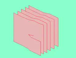 Het is mogelijk om zich voor te stellen dat een dergelijk rooster opgebouwd is uit lagen: vlakken van atomen die in plakjes bovenop elkaar liggen of naast elkaar staan. Figuur 2 en Figuur 3 tonen hoe deze voorstelling volgt uit het kristalrooster van Figuur 1.