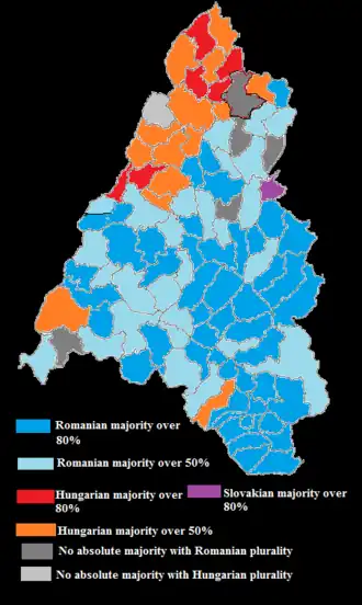 Volgens de voorlopige resultaten van de volkstelling van 2021 (uitgevoerd in 2022) hebben 122.111 personen het Hongaars als moedertaal, 112.387 personen gaven aan een Hongaarse nationaliteit te hebben (22,3%).
