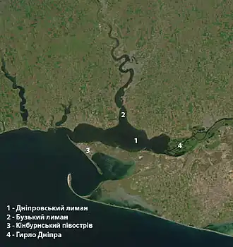 - Dit artikel of een eerdere versie ervan is een (gedeeltelijke) vertaling van het artikel Dnieper-Bug Estuary op de Engelstalige Wikipedia, dat onder de licentie Creative Commons Naamsvermelding/Gelijk delen valt. Zie de bewerkingsgeschiedenis aldaar.