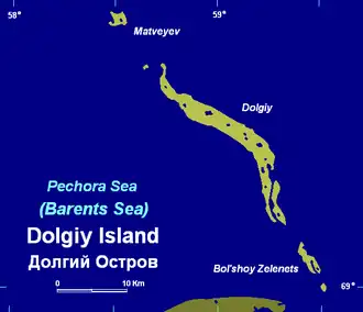 Dolgi (Russisch: Долгий) is een eiland in de Petsjorazee op iets ten oosten van de Chajpoedyrbaai. Het langgerekte eiland verloopt van het noordwesten naar het zidoosten en heeft een lengte van 38 kilometer en een gemiddelde breedte van 2,8 kilometer. De kleinere eilandjes aan noordwestzijde (Matvejev) en zuidoostzijde (Bolsjoj Zelenets) vormen verlengingen van dezelfde onderzeese structuur. Het zuidoostelijke uiteinde bevindt zich op ongeveer 12 kilometer van het vasteland van Nenetsië (onderdeel van de oblast Archangelsk). Het andere eiland met de naam Dolgi in Nenetsië bevindt zich westelijker, in het estuarium van de Petsjorarivier.