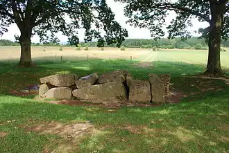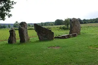 Ten oosten van de dolmen bevinden zich vijf grote stenen, waarvan er vier rechtop staan als een menhir. In de zestiende eeuw zouden deze stenen in de grond zijn weggestopt, maar vier ervan werden na de opgravingen in de lente van 1997 weer rechtop op hun oorspronkelijke plaats gezet. De vijfde steen ligt ernaast omdat onduidelijk is waar deze heeft gestaan.