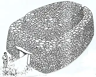- een dolmen die is uitgebreid met een langwerpige ruimte, soms met zijkamer in de gang (deze kamer kan een brede uitloper van de gang zijn (V-vorm) of verbonden zijn met de kamer (P-vorm)). Komt vaak voor in Bretagne.