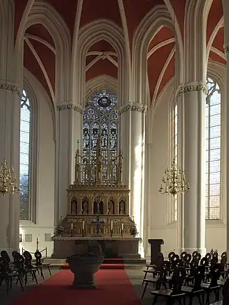 Het hoofdaltaar is een neogotisch werk uit 1830. Boven het altaar is een houten, vergulde altaaropstand van 4 meter breed en 7,5 meter hoog. De kerk herbergt een doopvont uit de 13e eeuw. Daarnaast bevindt zich in het koor een fraai bewerkte levietenstoel (zitplaats voor de geestelijken) uit de 14e eeuw. Onder de westelijke galerij bevinden zich twee sarcofagen. De sarcofaag in de noorderhoek werd de rustplaats van de laatste katholieke aartsbisschoppen Christoph von Braunschweig-Wolfenbüttel en Georg von Braunschweig-Wolfenbüttel. Georg, een broer van Christoph, bekeerde zich op zijn sterfbed nog tot het protestantisme. In de zuidelijk hoek staat de sarcofaag van Philipp Sigismund von Braunschweig-Wolfenbüttel, een achterneef van Christoph en Georg en een van de eerste protestantse prinsbisschoppen. Hij liet nog tijdens zijn leven de monumentale sarcofaag oprichten. De gotische crypte dateert uit de 13e eeuw.[1]