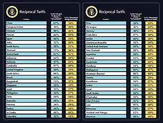 - ↑ (en) Trump unveils global reciprocal tariffs (2 april 2025). Gearchiveerd op 2 april 2025.