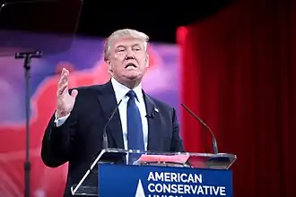Trump is lid van de Republikeinse Partij. Voorafgaand aan zijn presidentschap had hij geen politieke functies bekleed. Hij is actief in de vastgoedsector en was presentator van het televisieprogramma The Apprentice op NBC.