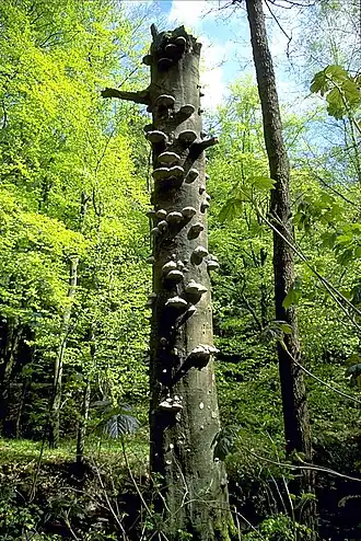 Dood hout wordt in de loop van de tijd afgebroken door bacteriën, kevers en paddenstoelen als de tondelzwam, de honingzwam en vele andere houtverterende paddenstoelen. De humus die zo ontstaat, is een voedingsbodem voor ontelbare planten. Dood hout bouwt ook een kiembed op voor vele jonge bomen; de massa en verdeling ervan bepaalt in hoge mate de naar het natuurlijk verval nieuw ontstane bestands- en bosstructuren.