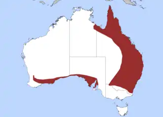 - ↑ Steve K. Wilson (2015). The Reptiles of Queensland. Reed New Holland Publishers, Pagina 246, 247. ISBN 9781921517488.
