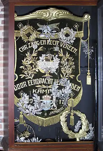 Op het vaandel staat nog de oorspronkelijke naam: 'Christelijke Zang- en Reciteervereeniging Door Eendracht Verbonden'. Het is intussen volbeladen met medailles en andere eretekenen en prijkt als oertijds relikwie in zijn kast in de Open Hof. Piet Steege werd na twee jaar in 1920 als dirigent opgevolgd door koorlid Zwier Schreurs, die echter vrij snel Kampen moest verlaten, waarna Herman van Elburg werd aangesteld. Sigarenmaker van beroep, beperkt van opleiding maar met sierlijke muzikale talenten, waaraan DEV veel te danken kreeg. Zo kon vanaf 1923 worden deelgenomen aan concoursen. Onder de bezielende leiding van dirigent Jan Belder zong DEV zich tot in de 'afdeling uitmuntendheid' en behaalde vaak de hoogste eer en meeste punten.