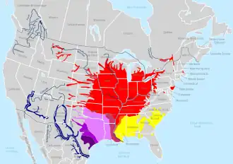 | Apalone spinifera spinifera | Lesueur, 1827 | De rest van het areaal |