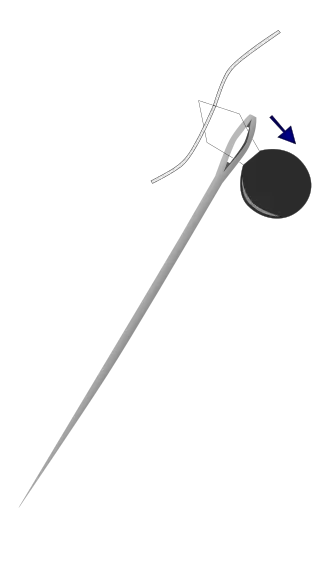 Een ander type naalddoorhaler wordt mechanisch bediend. Deze kan onderdeel zijn van een naai- of borduurmachine.