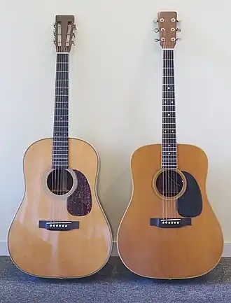 De Martin D18 en D28 zijn veruit de bekendste modellen van Martin. De D18 heeft mahoniehouten achter- en zij-kanten waardoor de gitaar zeer warm klinkt. Op de duurdere D28 zijn de zijkant en de achterkant uit palissander vervaardigd. Daardoor klinkt deze gitaar helderder.