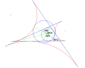 De raakpunten van de negenpuntscirkel en de aangeschreven cirkels vormen een driehoek die de driehoek van Feuerbach wordt genoemd. De driehoek is gelijkvormig aan en perspectief met de ceva-driehoek van X(1). Het perspectiviteitscentrum is het punt van Feuerbach X(11).