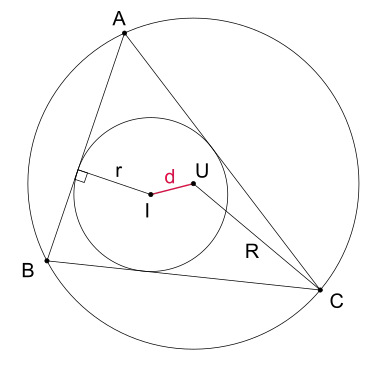 Gegeven een driehoek, laat R de straal van de omgeschreven cirkel zijn en r de straal van de ingeschreven cirkel. Dan geldt voor de afstand d tussen de middelpunten van deze twee cirkels dat