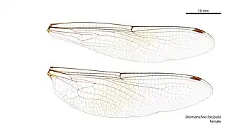 | Vleugel van Dromaeschna forcipata (vrouwtje) | |||||||||||||||