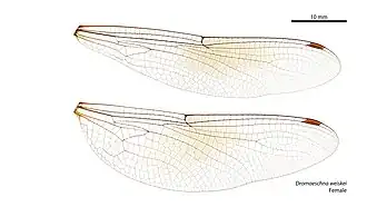 | Vleugel van Dromaeschna weiskei (vrouwtje) | |||||||||||||||