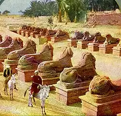 - tussen de tempel van Chonsoe en de Luxortempel (door toeristen vaak de Sfinxenlaan of Sphinx Alley genoemd).