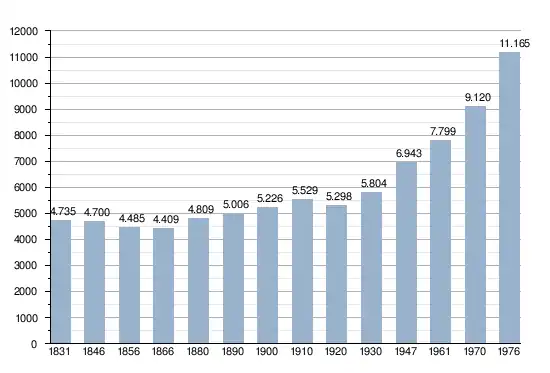 Bronnen: NIS - Opmerking: 1831 tot en met 1970 volkstellingen; 1976 = inwonertal op 31 december.