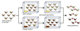 | Schematische weergave Speciatie experiment bij Drosophila pseudoobscura | |||||||||||||||