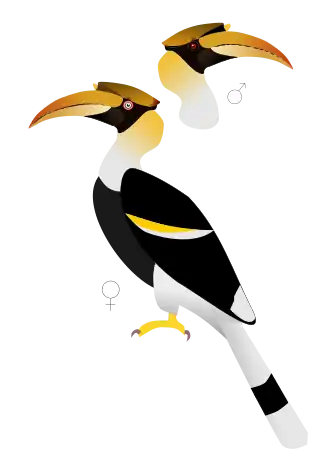 | Dubbelhoornige neushoornvogel IUCN-status: Kwetsbaar[1] (2020) | |||||||||||||
