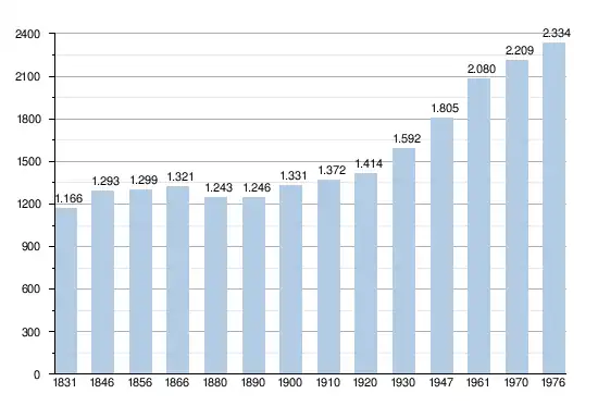 - Bronnen: NIS, Opm:1831 tot en met 1970=volkstellingen; 1976 = inwoneraantal op 31 december