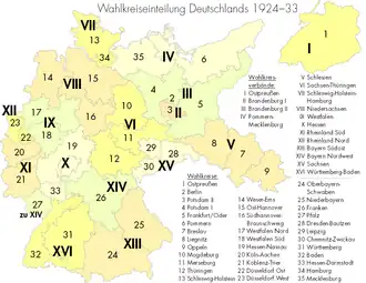 Met de stichting van de Republiek Duitsland (1918) kwam er een einde aan het ongelijke kiesrecht. Stemgerechtigd werden alle Duitse mannen en vrouwen van 20 jaar en ouder, uitgezonderd hen die het burgerrecht niet bezaten. De Rijksdag werd tijdens de Weimarrepubliek via het stelsel van evenredige vertegenwoordiging gekozen. Op iedere 60.000 Duitsers werd één rijksdagafgevaardigde gekozen.