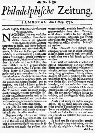 De eerste Duitstalige kranten op het Amerikaanse continent ontstonden al in de koloniale tijd. Zelfs vóór alle Engelse kranten het nieuws brachten wist de ‘Pennsylvanischer Bote’ al op 5 juli 1776 te melden dat het Continental Congress, bestaande uit gedelegeerden van de dertien koloniën, had besloten de Amerikaanse Onafhankelijkheidsverklaring te accepteren. De eerste Duitstalige krant op Amerikaans grondgebied was echter de ‘Philadelphische Zeitung’. Het bestaan van deze in 1732 opgerichte krant was maar van korte duur. De ook tegenwoordig nog verschijnende ‘New Yorker Staatszeitung’ zag in 1834 het levenslicht.