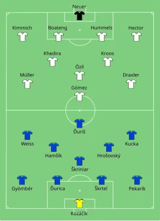 | Kroos Müller Özil Draxler Schweinsteiger Hummels Kimmich Boateng Hector |