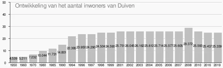 De gemeenteraad van Duiven bestaat uit 21 zetels. Hieronder de behaalde zetels per partij bij de gemeenteraadsverkiezingen sinds 1998.