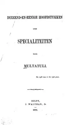 Werken van of over dit onderwerp zijn te vinden op de pagina Duizend en eenige hoofdstukken over specialiteiten op Wikisource.