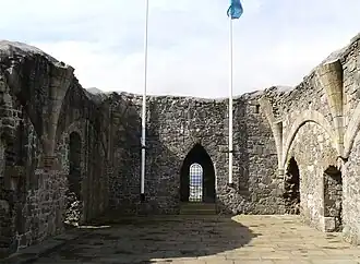 In de late dertiende eeuw bouwde Alexander Stewart, de vierde High Steward een stenen kasteel, waarvan enkel de put en de fundamenten van een toren zijn overgebleven. Het kasteel bestond uit twee grote blokken om een ronde binnenplaats en was in zijn geheel omringd door een walmuur met vier ronde torens. De grote blokken hadden aan de voorzijde eveneens ronde torens. Tijdens de oorlogen met Engeland in de vroege veertiende eeuw werd dit kasteel grotendeels vernietigd.