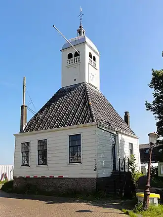 De kerk staat aan een zijstraat van de dijk. Het is een waterstaatskerk uit 1840 met begraafplaats. Het zaalvormige kerkgebouw heeft door lisenen gelede zijmuren en een dakruiter. Op dezelfde plek stond eerst een andere kerk, uit 1642. Die had zo zwaar te lijden gehad onder diverse stormen en de Stormvloed van 1825, dat het kerkbestuur een nieuwe kerk noodzakelijk achtte. Bij de bouw werden veel stenen uit de oude kerk hergebruikt. Ook de preekstoel, enkele kroonluchters en de luiklok van Pierre Hemony werden overgenomen.[1]