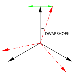 Tussen de fasespanningsvectoren van een driefasenelektriciteitsnet zit een hoek van 120°. Tussen de vectoren onderling zit de lijnspanning. Door nu (een fractie van) de spanning tussen twee vectoren op te tellen bij de derde vector zal de spanning in loodrechte richting verschuiven. Hoe groter de hoek van de vector afwijkt van zijn normale richting, hoe groter de dwarshoek (max. 30°) en hoe groter het vermogen.