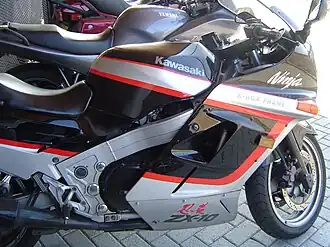 Het E-box frame is een aluminium frameconstructie waarbij twee brede zijdelingse ribben versterkt zijn door een extra tussenstuk. Het werd toegepast op de Kawasaki ZX-10 uit 1988 en latere modellen.