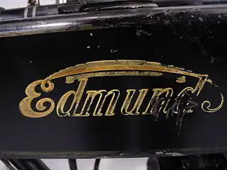 Hoewel het merk volgens sommige bronnen al in 1907 bestond, dateren de eerste bekende modellen van 1911. Toen presenteerde men een model met riemaandrijving en een 3½pk-JAP-inbouwmotor. Dit eerste model was al voorzien van een bijzondere voorvering, waarbij de vorkpoten onder het balhoofd konden kantelen, gecontroleerd door een bladveer. Achtervering was in die tijd nog zeer ongebruikelijk, maar de Edmund-motorfiets had twee bladveren die via een schuivende stang het zadel, de tank en de voetrusten afveerden.