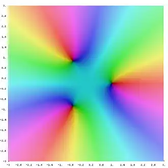 De complexe -de eenheidswortels liggen op de eenheidscirkel van het complexe vlak en zij vormen in dat vlak -zijdige regelmatige veelhoeken met een hoekpunt op 1 en het middelpunt op 0. De -de eenheidswortels zijn een nulpunt van .