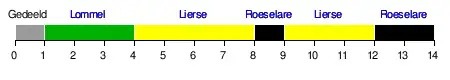 | 1 | KSV Roeselare | 14 | 9 | 3 | 2 | 30 | 24 | 15 | +9 | Periodekampioen |