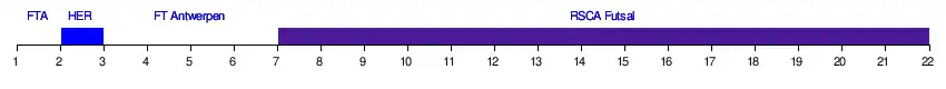 | RSCA Futsal | 11 | 16 | 2 | |||||||||||||||