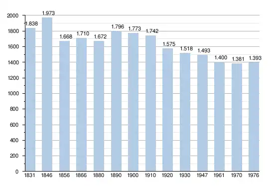 - Bronnen:NIS, Opm:1831 tot en met 1970=volkstellingen; 1976 = inwoneraantal op 31 december