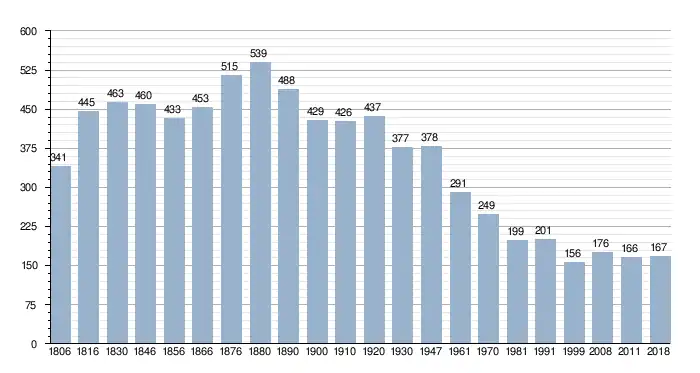 Bronnen: NIS, www.westhoek.be en Stad Veurne. Opm:1806 t/m 1991=volkstellingen; 1999=inwoneraantal op 1 januari; 2008=inwoneraantal op 14 februari; 2011=inwoneraantal op 14 juni
