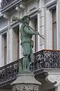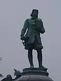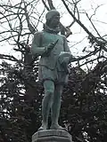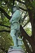 - Willem de Zwijger, prins van Oranje (1533-1584) door Charles Van der Stappen, als leider van de opstand der Nederlanden tegen Spanje onder koning Filips II voorgesteld met krachtige en koppige trekken, draagt een staf, terwijl zijn linkerhand op zijn degen rust.