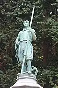 - Bernard van Orley (1492-1542), door Julien Dillens. Het betreft hier de vermaarde Brusselse schilder die Italië bezocht had en daar onder invloed van de Renaissance kwam te staan.