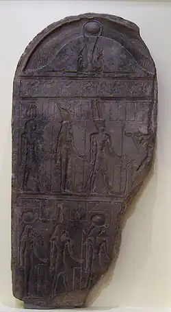 - Rijksgoden en de zonnegod in het Nieuwe Rijk: alle goden kregen deel aan de zonnecultus, zelfs de oude krokodilgod Sobek kreeg solaire trekken. Amon drong zich op tot exclusieve hoofdgod en verdrong Re, wiens scheppende kracht werd overgenomen door Atoem. De verschijningsvorm veranderde, de afbeelding van de goden als dieren overheerste. Het theologische hoogtepunt onder Achnaton volgde, waarin de Amarnaperiode Aton van Amon werd afgescheiden en de traditionele scheppingsgoden werden afgeschaft. Aton (letterlijk zonneschijf) werd de fysische aanwezigheid van de oppergod.